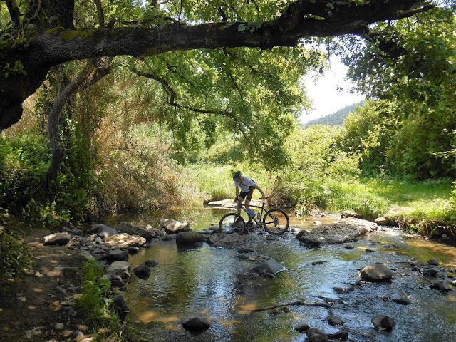 Pouco depois da reparação, substituição da câmara de ar, continuámos o nosso trajecto, lá se começava a travessar os leitos da ribeira, passámos um dois e três, ao terceiro foi de vez para mim.