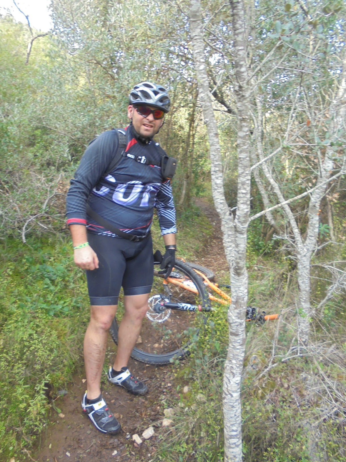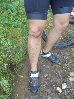 Não dá para tudo, até cair em modo flippers, distraí-me no trilho do Superfresco, e embati com o guiador numa árvore (ligeiramente largo, mas dá para passar), e fui projectado para a frente, embatendo em várias árvores à minha esquerda, e por fim chão semeado de pedras, resultado, joelho dorido e algumas mazelas nas mãos.